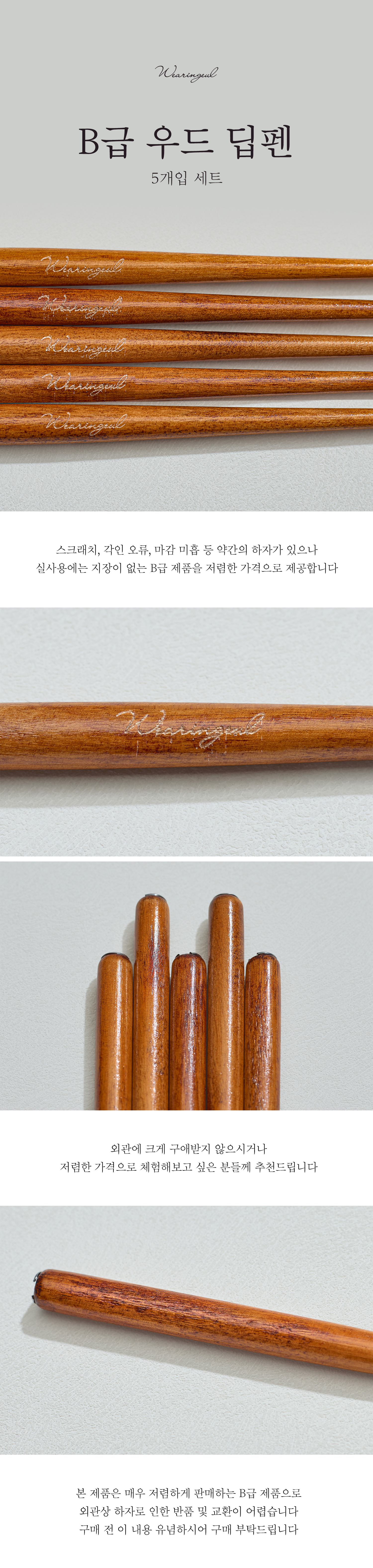 B급 우드 펜대 5개가 1세트로 제공되며,