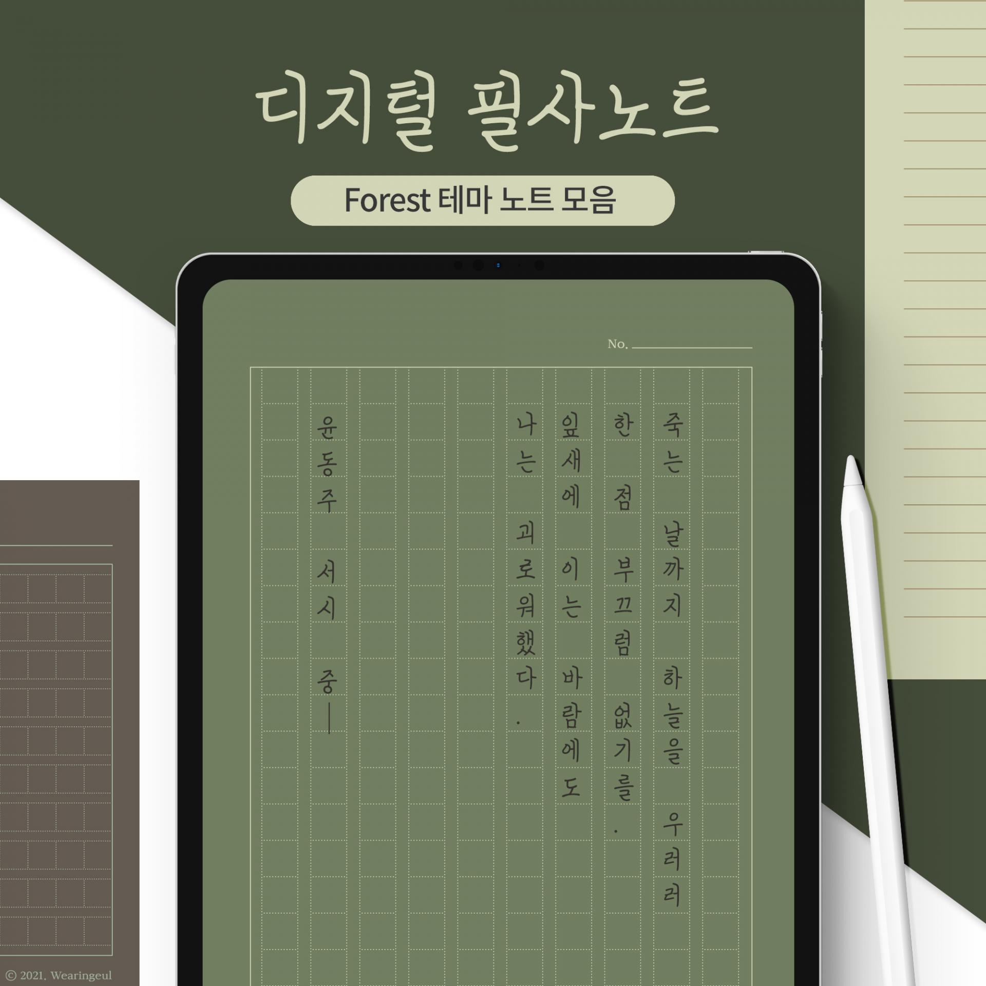 필사노트 FOREST 테마 (라인노트+원고지) 구매페이지입니다.